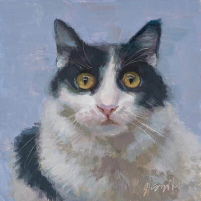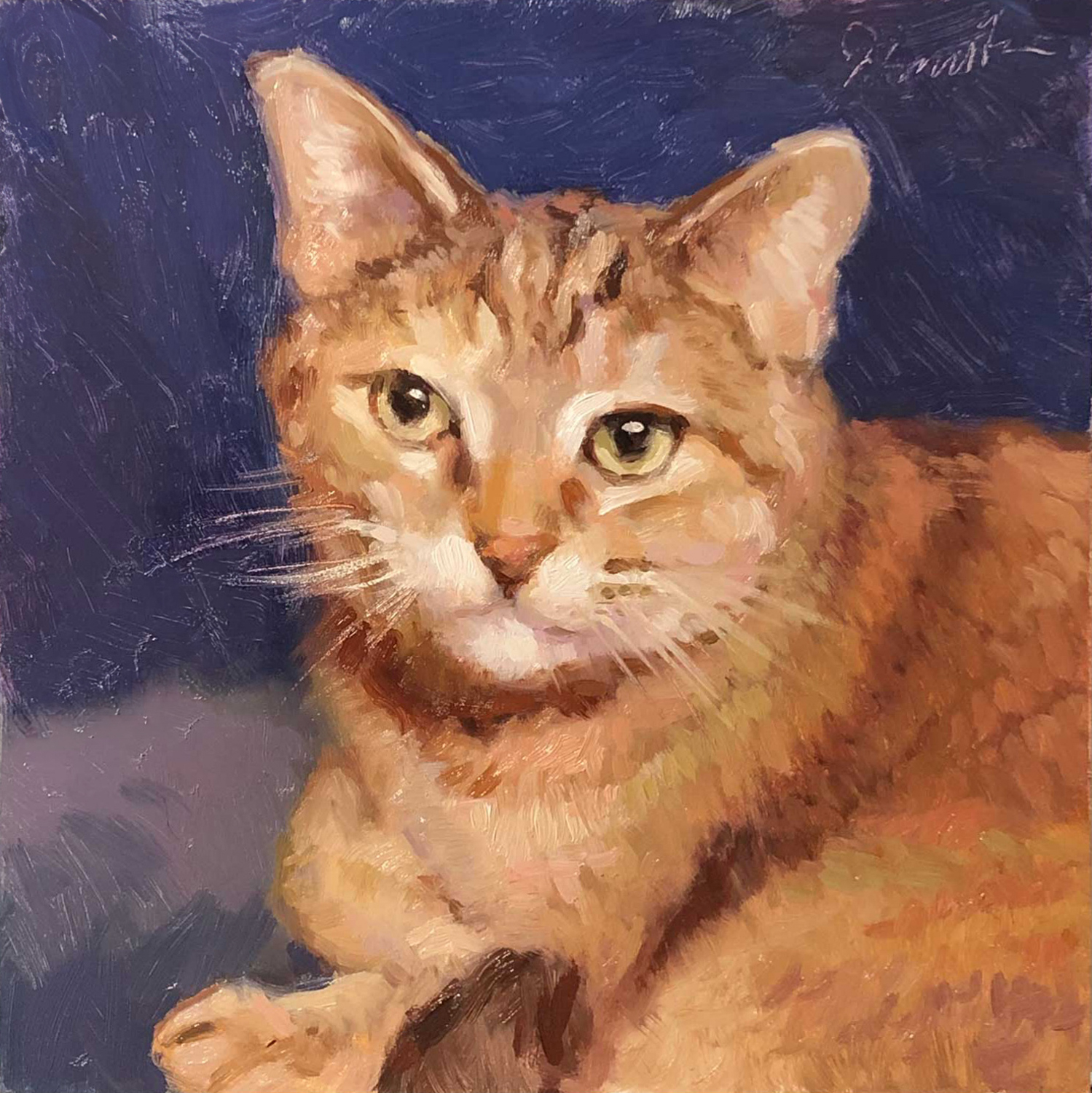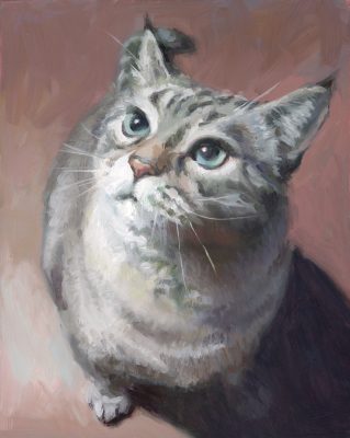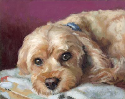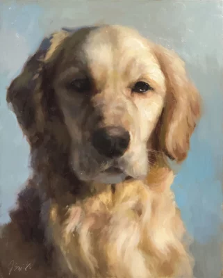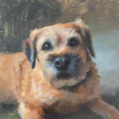 Working from your photos, I refine light, color, and atmosphere to create a thoughtful composition that feels both personal and timeless. Rather than copying a photograph exactly, I simplify and shape the setting so your pet remains the clear focus.